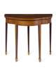 LATE GEORGE III SATINWOOD AND MAHOGANY INLAID FOLDOVER CARD TABLE