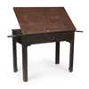 the ratchet adjustable top above a sliding front panel opening to a fitted interior, with two lateral candle holders; raised on chamfered square legs on casters