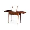 the divided hinged top opening to a fitted interior, above two dummy short and a real long drawers, raised on square tapered legs ending in spade feet with castors
