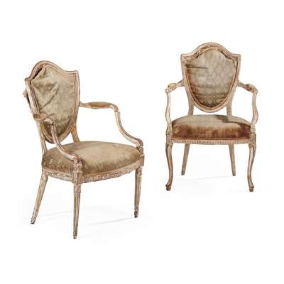 PAIR OF PAINTED GEORGE III HEPPLEWHITE ARMCHAIRS