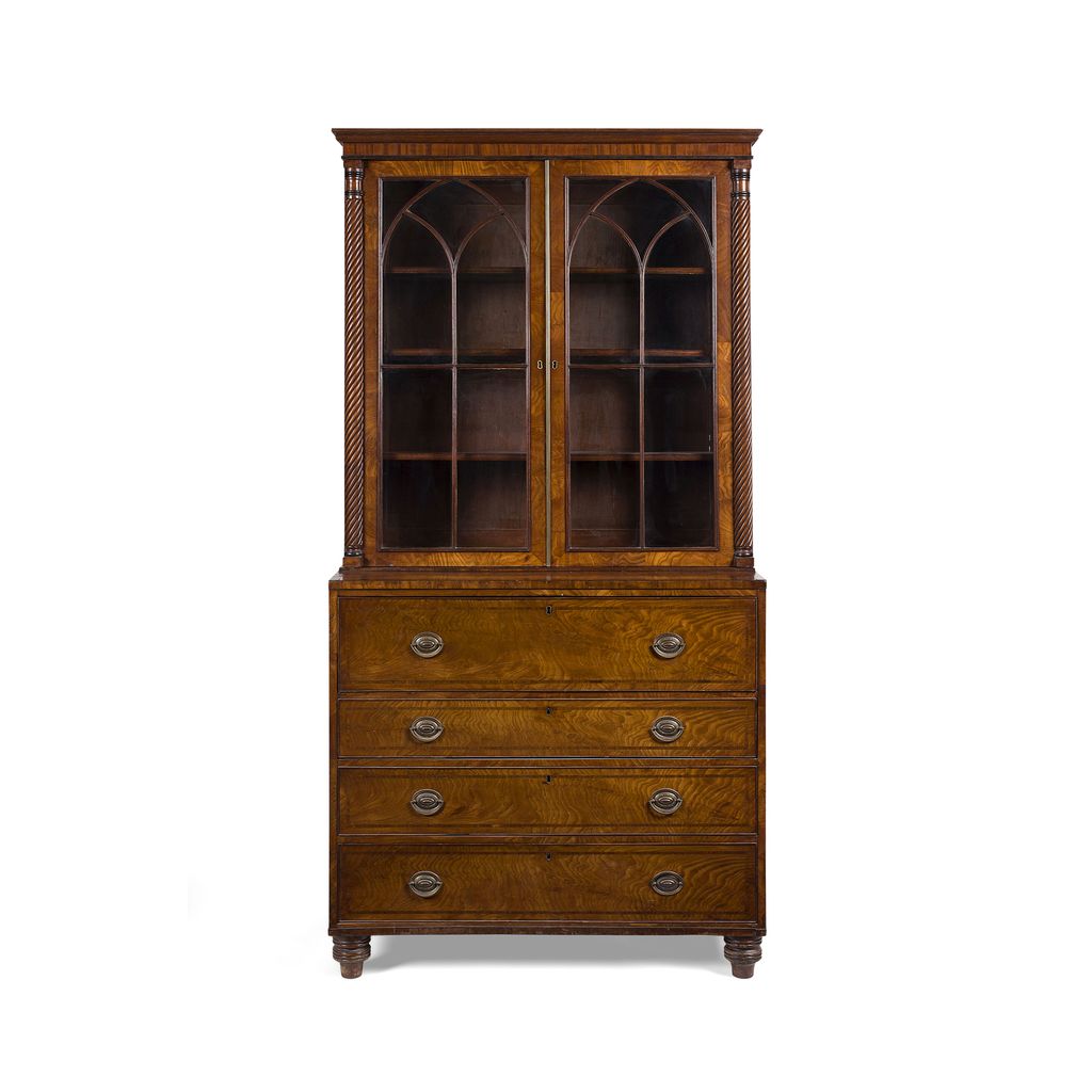 REGENCY FIGURED MAHOGANY BOOKCASE