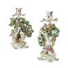 each modelled with a fluted sconce and pierced drip tray above a cherub reaching to a bird sitting amongst brocage, with a dog and a quiver of arrows by his side, on a rococo formed base with scrolled feet, with red painted dagger and arrow mark (2)