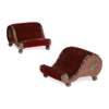 of serpentine outline upholstered in red velvet, with gilt metal mounts and raised on brass ball feet (2)