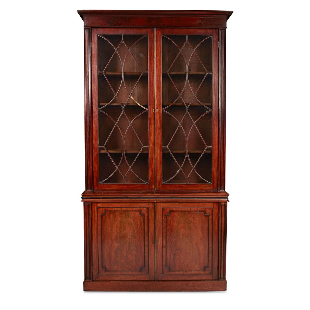 LATE GEORGE III MAHOGANY AND EBONY BOOKCASE CABINET