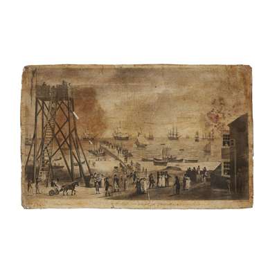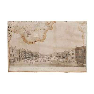 comprising 'A North West View of the Quay of Great Yarmouth'; 'A South East View of the Market Place of Great Yarmouth'; and 'A North West View of the Jetty at Yarmouth'; together with three printed impressions of the same mounted on card (6)
