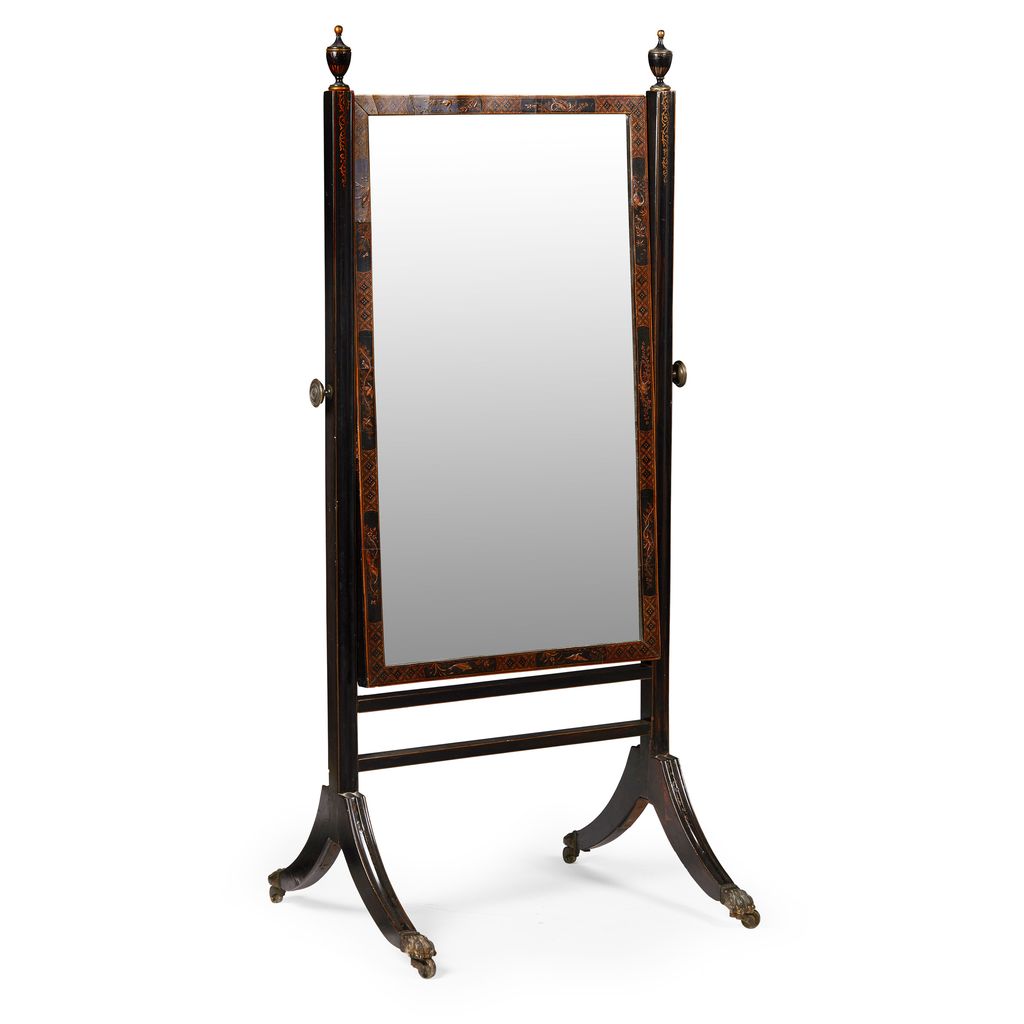 REGENCY STYLE BLACK JAPANNED CHEVAL MIRROR