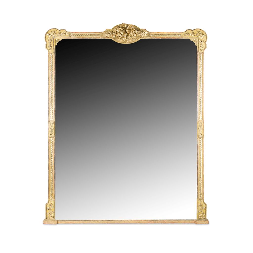 LARGE VICTORIAN GILTWOOD AND GESSO OVERMANTLE MIRROR