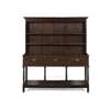 the moulded straight cornice above two long fixed shelves and an enclosed back; the base with three short frieze drawers, raised on turned and tapered legs joined by an undertier