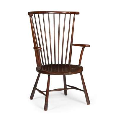 ARTS & CRAFTS STAINED BEECH AND ASH COMB BACK ARMCHAIR