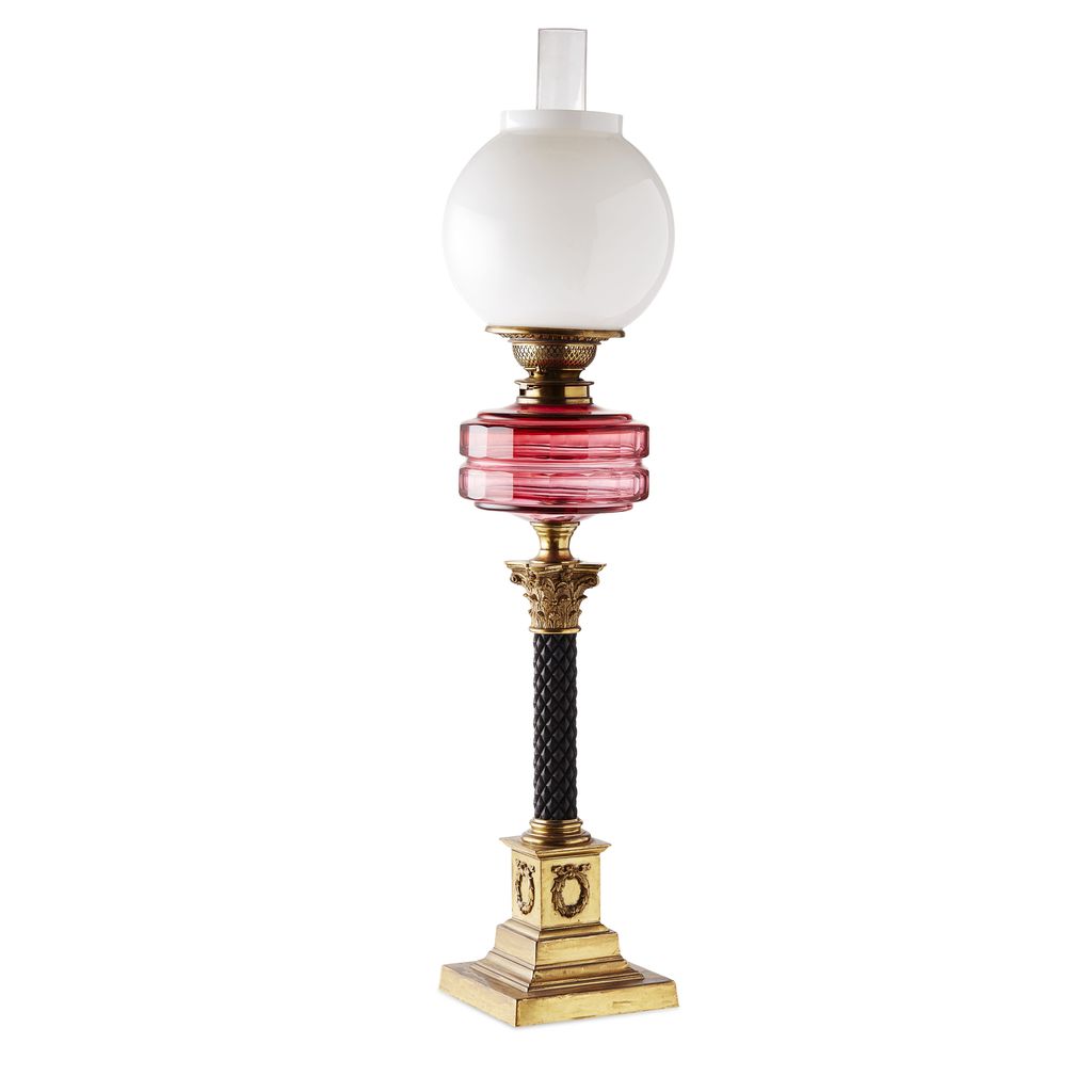 VICTORIAN RUBY GLASS AND GILT BRASS OIL LAMP