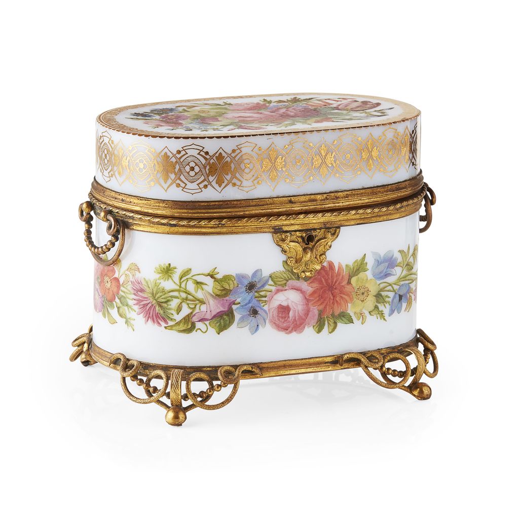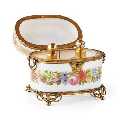 FRENCH PAINTED OPALINE GLASS PERFUME CASKET