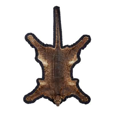 with glass eyes and an open mouth, backed on black felt and stamped VAN INGEN & VAN INGEN/ MYSORE and 20810, with a paper label