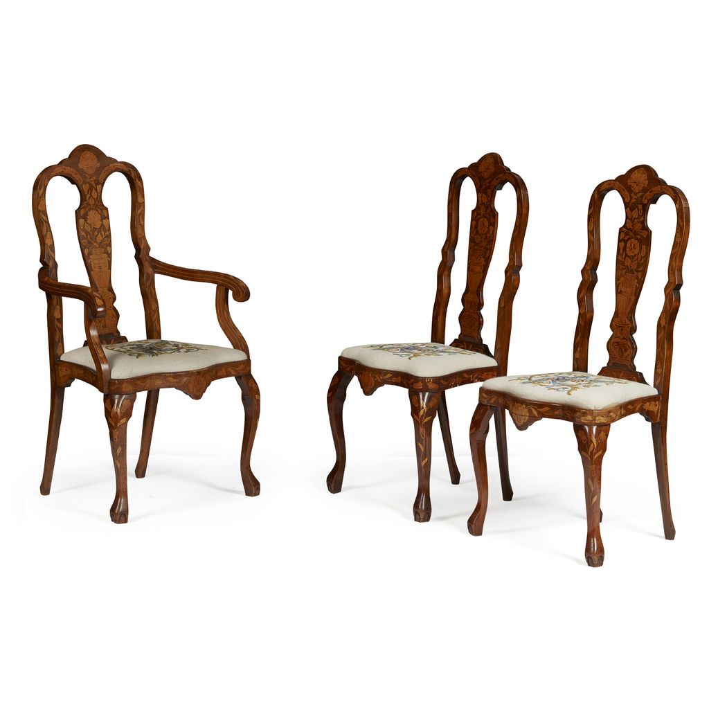 SET OF THREE DUTCH MARQUETRY CHAIRS