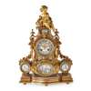 FRENCH PORCELAIN MOUNTED GILT METAL MANTEL CLOCK