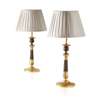 PAIR OF RESTAURATION PATINATED AND GILT METAL CANDLESTICKS