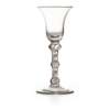 with plain bell shaped bowl above a triple knopped stem, with white, red and green enamel twist within, raised on a spreading domed foot