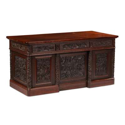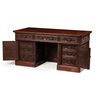 ANGLO-CHINESE CARVED HONGMU PEDESTAL DESK