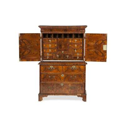 WILLIAM AND MARY WALNUT AND MARQUETRY CABINET ON CHEST