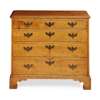 the rectangular top over four long graduated drawers, raised on shaped bracket feet
