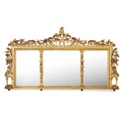IRISH CARVED GILTWOOD TRIPLE OVERMANTLE MIRROR