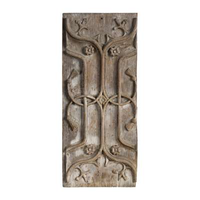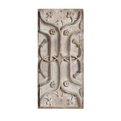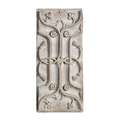 each panel carved in relief with interlaced bands, flowerheads, and tassels (4)