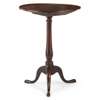 the circular dished top on a slender baluster column and cabriole legs ending in pad feet