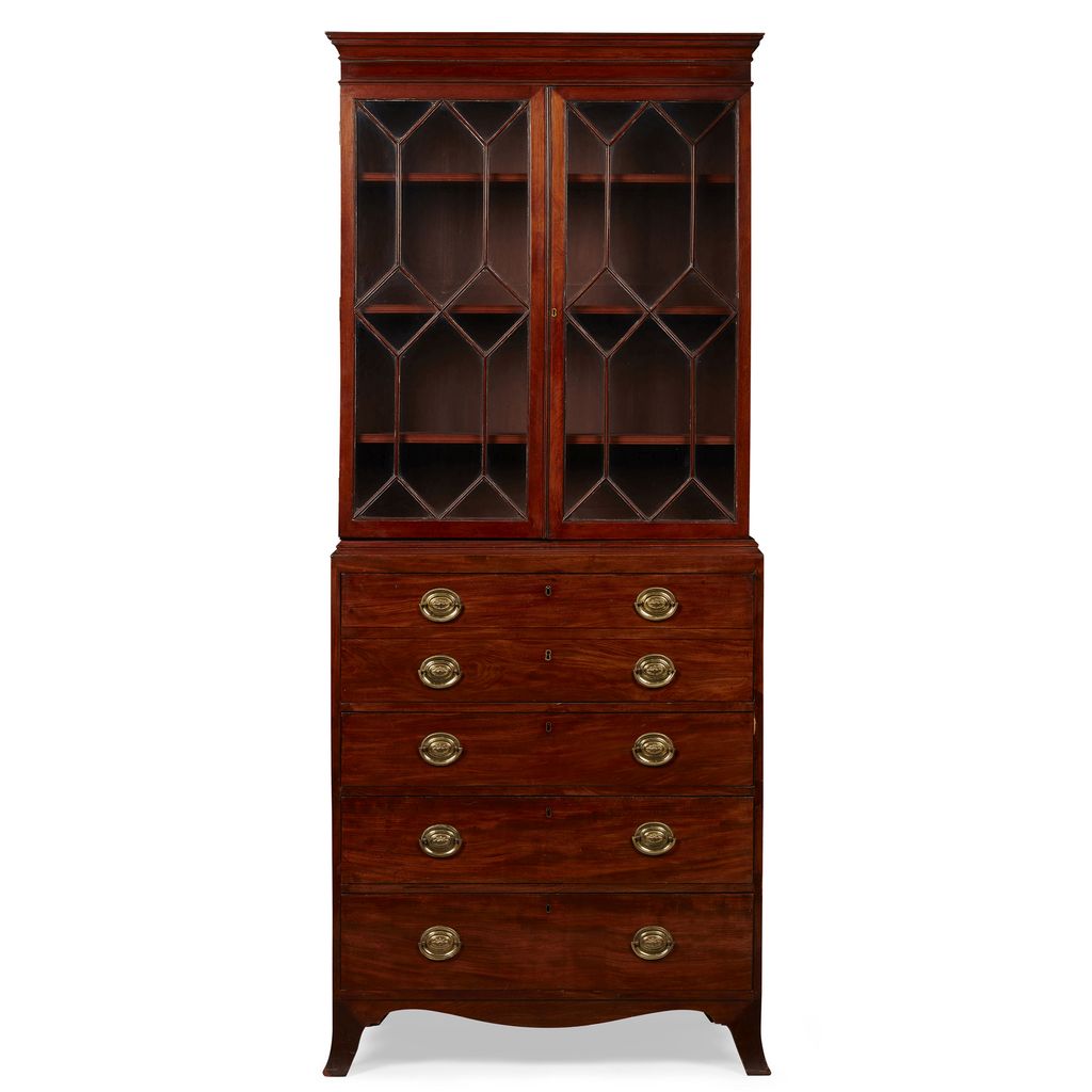 LATE GEORGE III MAHOGANY AND SATINWOOD SECRETAIRE BOOKCASE