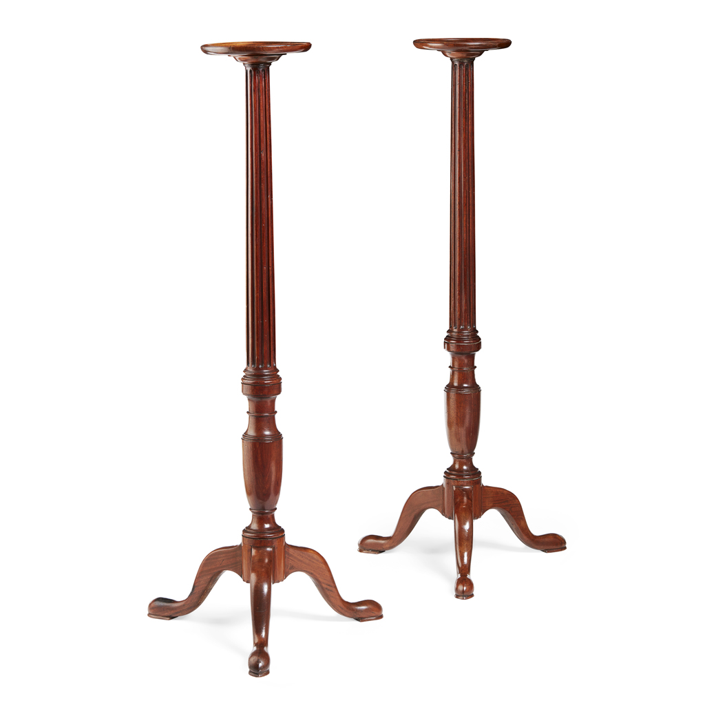 PAIR OF GEORGIAN CARVED MAHOGANY TORCHERES