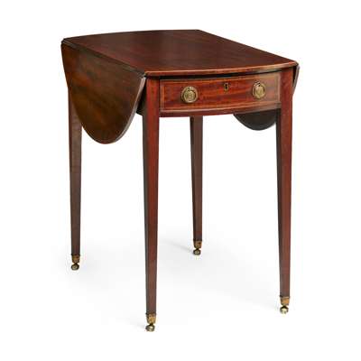 LATE GEORGE III MAHOGANY AND ROSEWOOD CROSSBANDED PEMBROKE TABLE