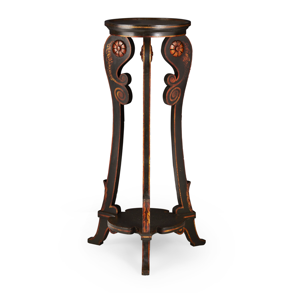 REGENCY EBONISED AND GOLD PAINTED JARDINIERE STAND