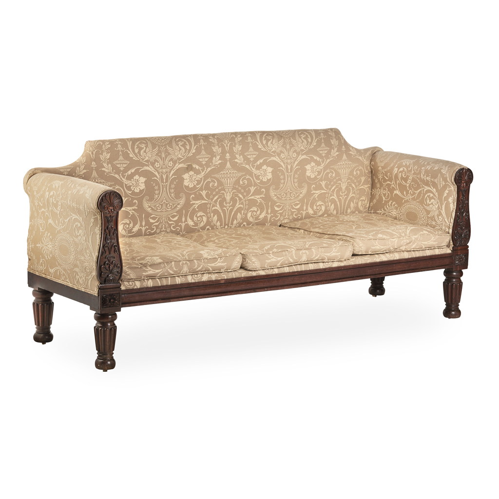 LATE REGENCY MAHOGANY FRAMED SOFA
