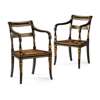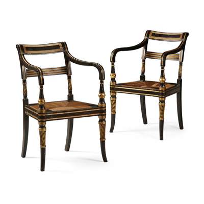 PAIR OF REGENCY BLACK JAPANNED AND GILT ARMCHAIRS