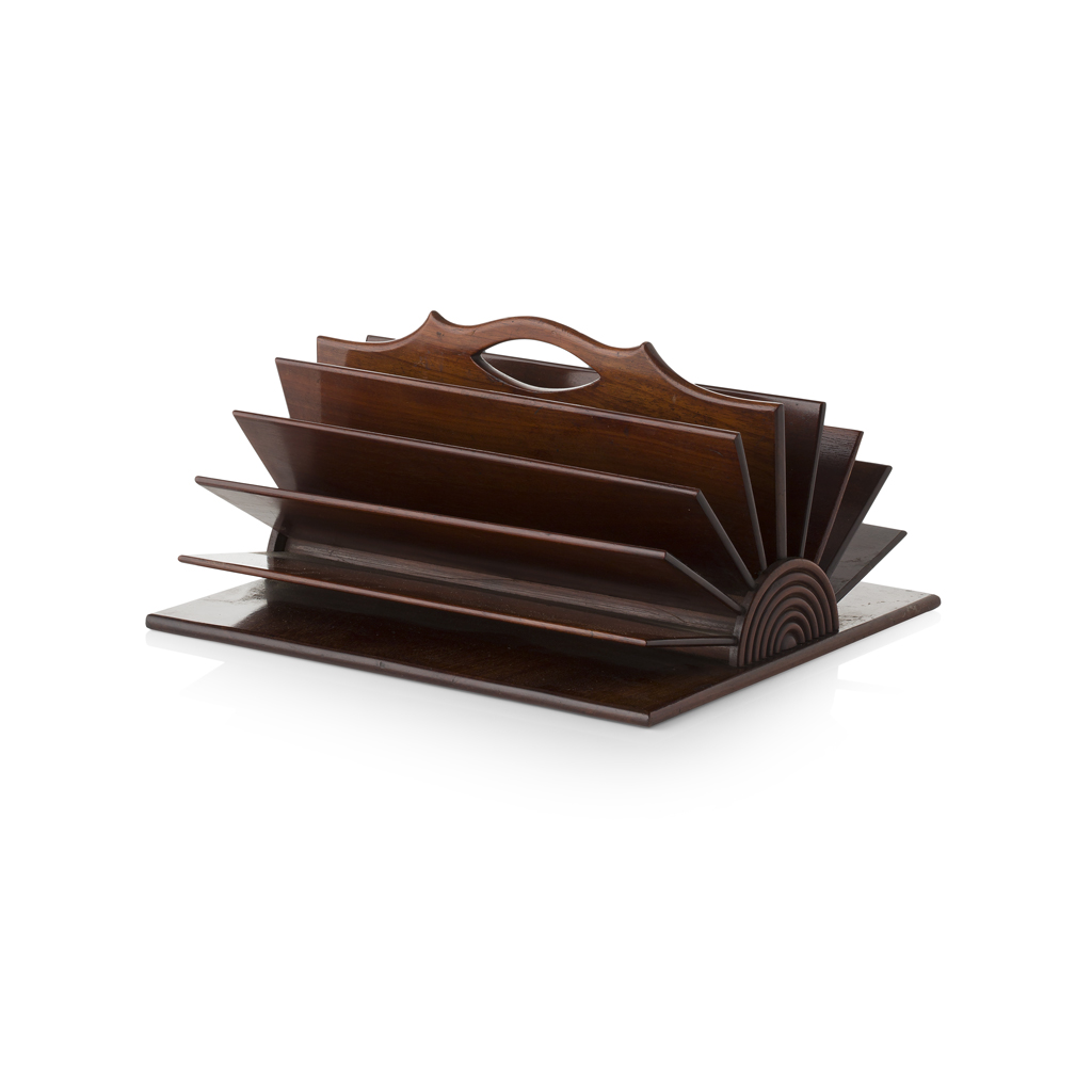 fitted with eight radiating dividers and a pointed oval cut handle, with demi-lune moulded panels to each end