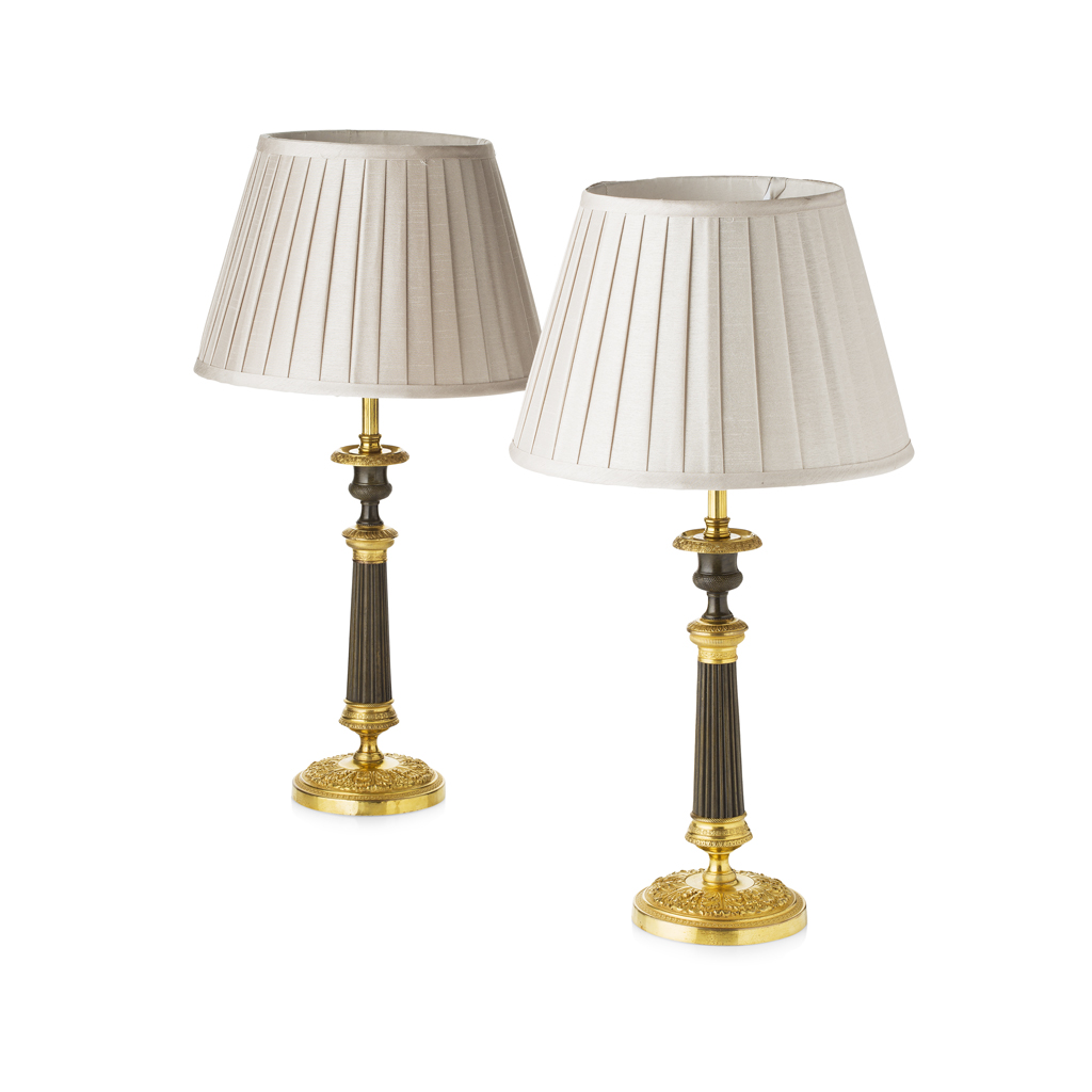 PAIR OF REGENCY PATINATED AND GILT BRONZE LAMPS