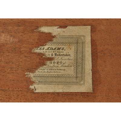 with four division top with block and turned baluster corner supports, with a base drawer bearing a partial paper trade label, on turned legs with brass castors