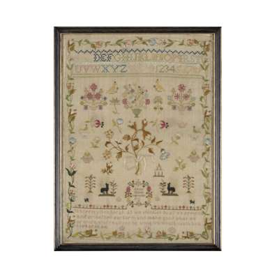 FRAMED NEEDLEWORK SAMPLER BY ESTHER SLEDDLE