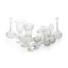 comprising: five boat form salts, including two pairs and one singular piece, largest 17cm wide; a pair of bottle form decanters and stoppers, each with a hexagonal form neck and strawberry cut body, 18.5cm high; four water jugs, of various shape and size, largest 18.5cm high; and two vases, each of flared footed form, 23.5cm and 21cm high (13)