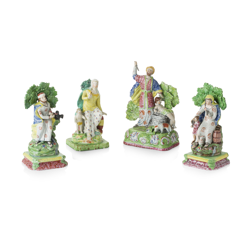FOUR LARGE STAFFORDSHIRE PEARLWARE FIGURE GROUPS
