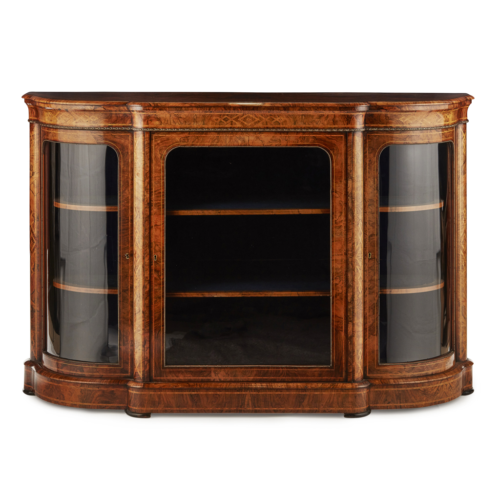 VICTORIAN BURR WALNUT AND INLAID CREDENZA