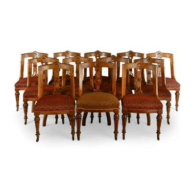MATCHED SET OF TWELVE VICTORIAN OAK DINING CHAIRS