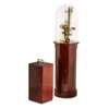 the base inscribed 'J. Martin / SOUTH SHIELDS' and '26'; with a mahogany case with brass handle; on a cylindrical mahogany display stand and glass dome, the stand with a door opening to shelves