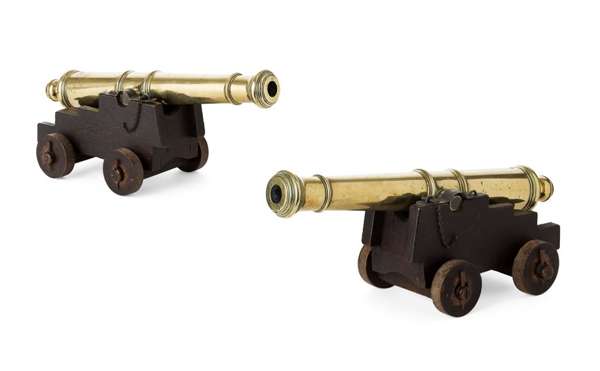 PAIR OF BRASS SIGNALLING CANNONS