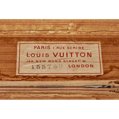 canvas with metal straps and ash straps, the brass studs stamped Louis Vuitton, the interior with label and serial number 155780