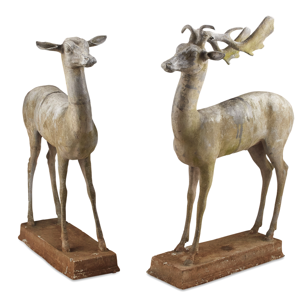 VICTORIAN LEAD GARDEN FIGURES OF A STAG AND DOE