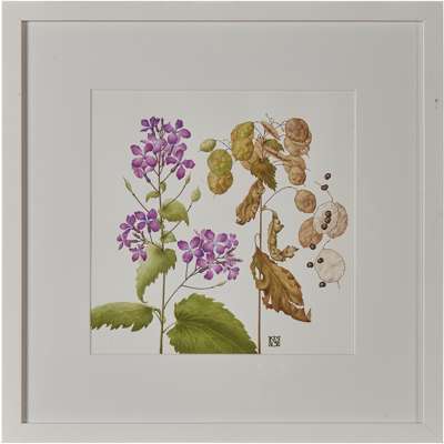 signed with initials, watercolour and a further 3 watercolours: Lunaria annus 'Honesty' by Gaye Willcox Norman; Lavender with Bees by Lyn Sykes; Forget-Me-Not, Myosotis by Jeanne Debons (4)