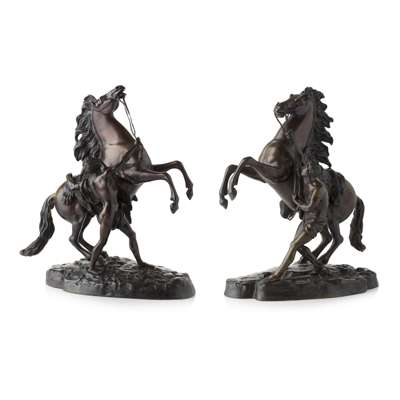 AFTER GUILLAUME COUSTOU, PAIR OF BRONZE MARLY HORSE FIGURES
