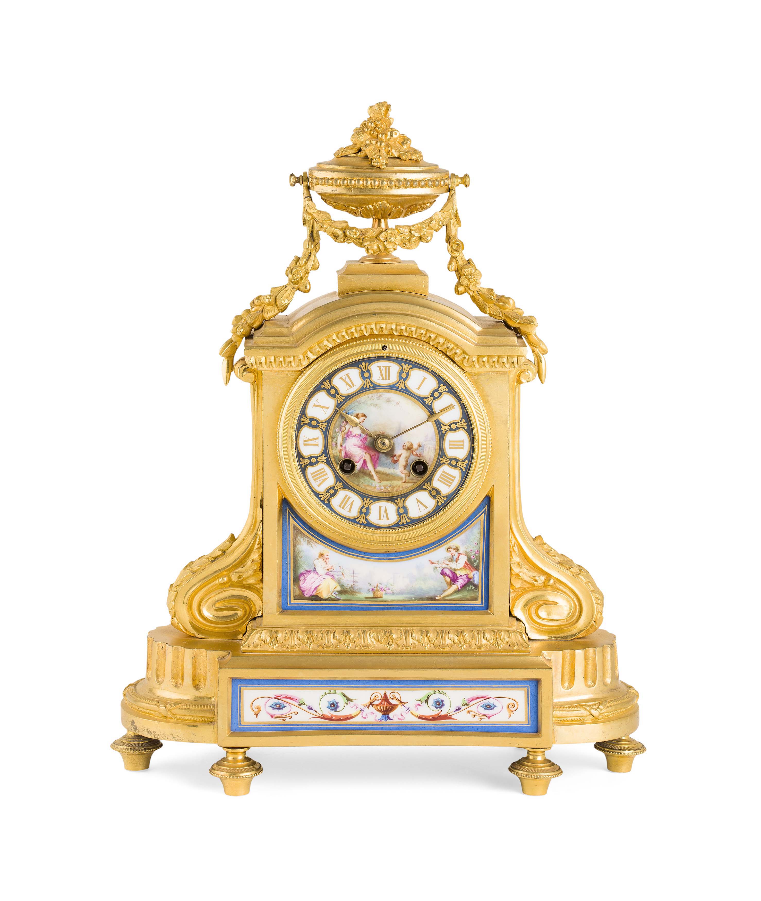 FRENCH GILT BRASS AND PORCELAIN MANTLE CLOCK