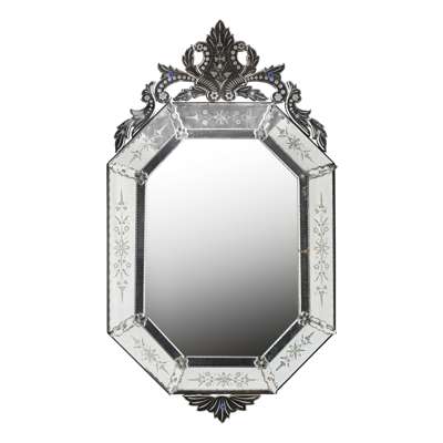 the octagonal bevelled mirror plate within etched margin plates and foliate scroll cresting