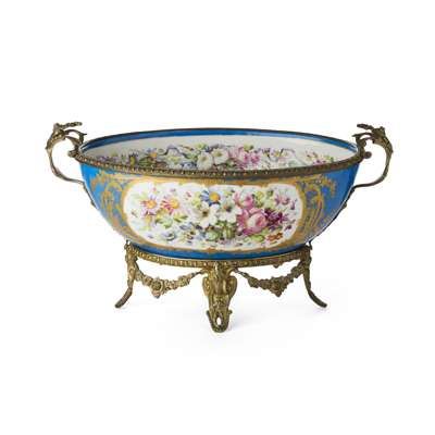 FRENCH SEVRES PORCELAIN AND GILT METAL MOUNTED CENTREPIECE BOWL