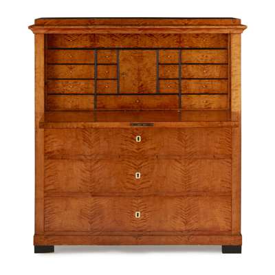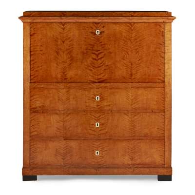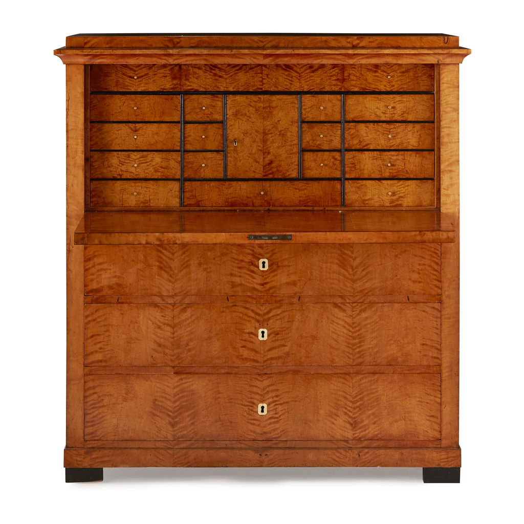 BIEDERMEIER SATIN BIRCH AND EBONISED FALL FRONT SECRETAIRE